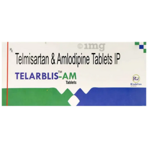 Telarblis AM 40mg/5mg Tablet is a combination of two medicines: Telmisartan and Amlodipine. Telmisartan is an angiotensin receptor blocker (ARB) and Amlodipine is a calcium channel blocker (CCB). They work by relaxing the blood vessels and making the heart more efficient at pumping blood throughout the body. Together, they lower blood pressure effectively.